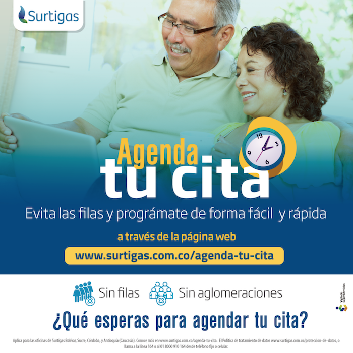 Cartagena- Colombia. 27 de mayo de 2021. Surtigas continúa trabajando en soluciones innovadoras para brindar al usuario el mejor servicio. En esta oportunidad la compañía ha implementado un aplicativo muy innovador para que el usuario pueda agendar de manera ágil su cita presencial a través de la página web www.surtigas.com.co/agenda-tu-cita, evitando filas y exposiciones innecesarias.